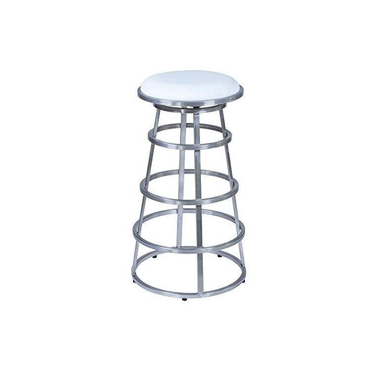• 30 Brushed Stainless Steel Barstool with White Pu Upholstery - Armen Living image - 1