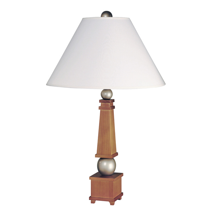 • Wood Table Lamp Honey Wood Silver Shade 100W - Lite Source image - 1
