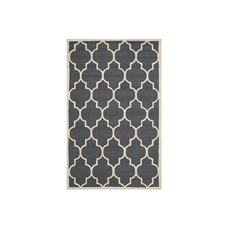 • Dark Grey Ivory Contemporary Medium Rectangle Wool Rug 9x6 - Safavieh image - 1