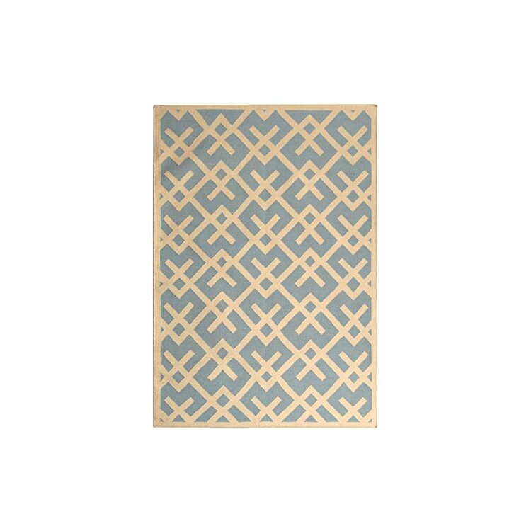 • Light Blue/Ivory Wool Pile Dhurries Rug 14'L x 10'W image - 1