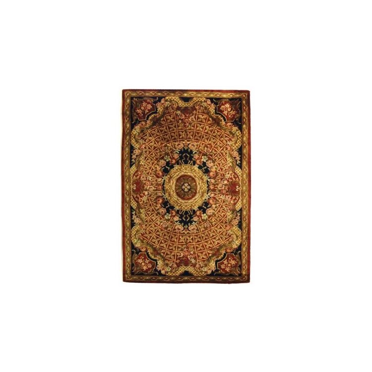 • Wool Pile Traditional Burgundy Black Round Rug Classic Design 8x8 - Safavieh image - 1